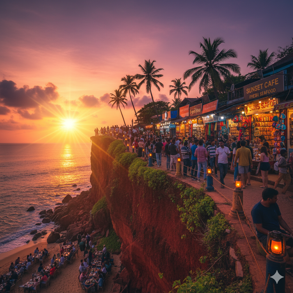 Grab a table at one of the many cliff-top restaurants. From fresh seafood platters to traditional Kerala thalis and international cuisine, there’s something for every palate. Don’t forget to try the local banana fritters!